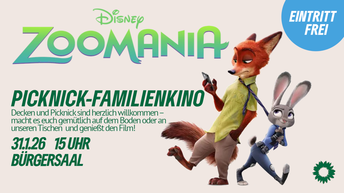 Am 31.01.2026 um 15 Uhr verwandelt sich der Bürgersaal in ein gemütliches Kino für Kinder. Decken dürfen gerne mitgebracht werden – die Kinder können auf dem Boden sitzen oder liegen und den Film ganz entspannt genießen. Auch ein kleines Picknick ist erlaubt.